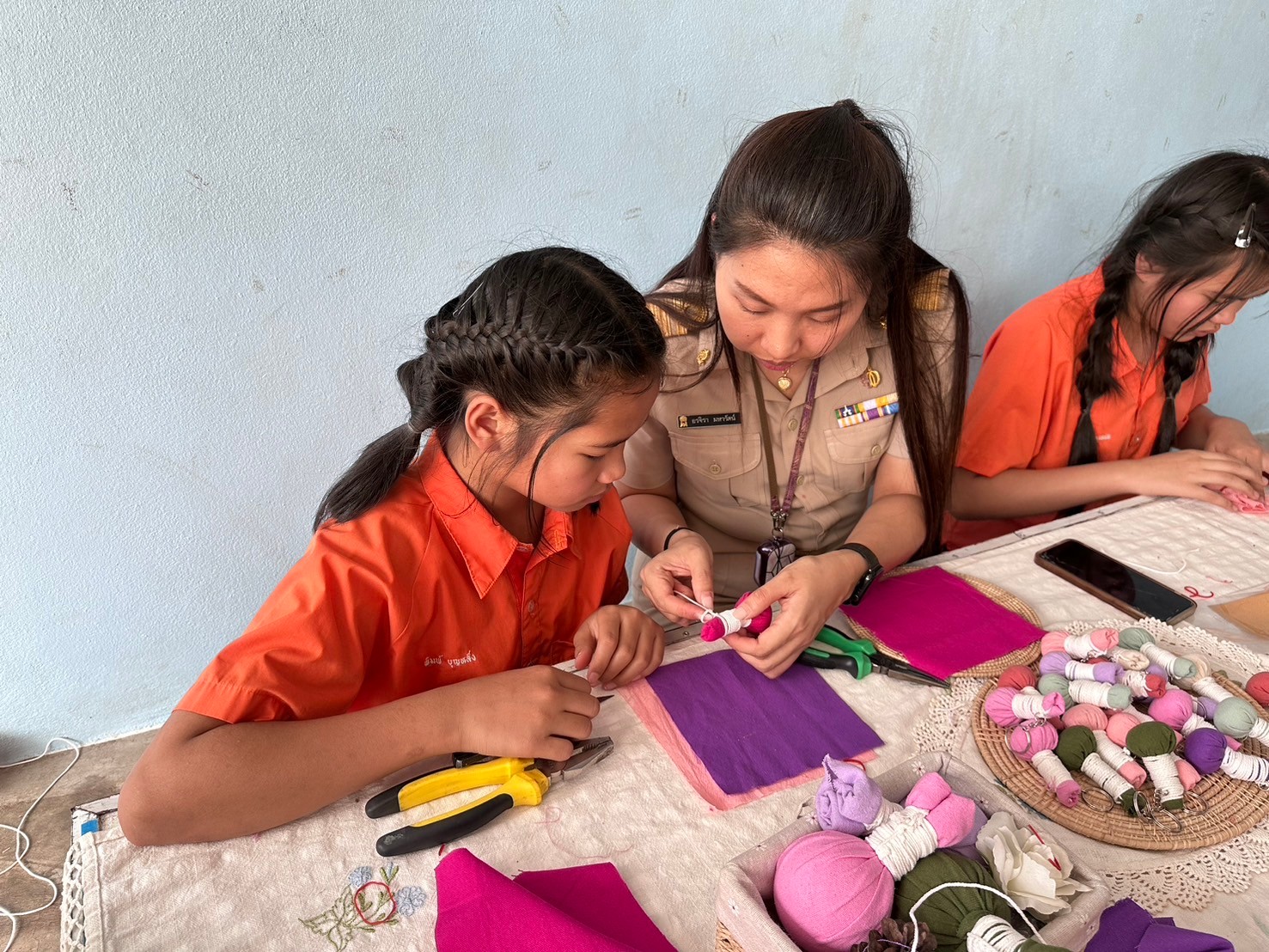 ลูกประคบจิ๋วเป็นผลผลิตที่ได้จากธรรมชาติ 100 % สมุนไพรที่ได้มาจากท้องถิ่น และเป็นเอกลักษณ์เฉพาะชาวบ้าน ที่ได้รับการส่งเสริมให้ปลูกในชุมชน ผ่านขั้นตอนการซอย อบด้วยโรงพลังงานแสงอาทิตย์ และสะอาดปราศจากสิ่งเจือปนทำให้มีกลิ่นคงคุณภาพเดิมและเก็บรักษาไว้ได้นานใช้เป็นของขวัญ ของฝากที่ทรงคุณค่า ซึ่งมีสรรพคุณช่วยบรรเทาอาการปวดเมื่อย ลดอาการปวดบวม อักเสบ และการเกร็งของกล้ามเนื้อ บรรเทาอาการหวัด รักษาเม็ดผดผื่นคัน ฯลฯ เพื่อเป็นการส่งเสริมอนุรักษ์ภูมิปัญญาพื้นบ้าน มาใช้ให้เกิดประโยชน์สูงสุดอย่างปลอดภัย ทั้งทางด้านส่งเสริมสุขภาพ ตลอดจนสร้างรายได้แก่นักเรียนในชุมชนต่อไป